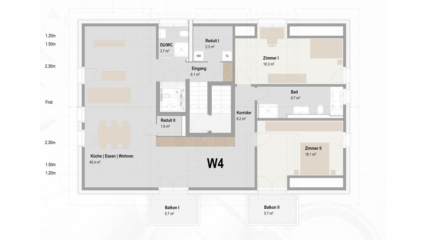 - Zwei überdurchschnittlich grosse Schlafzimmer mit je über 18 m²
